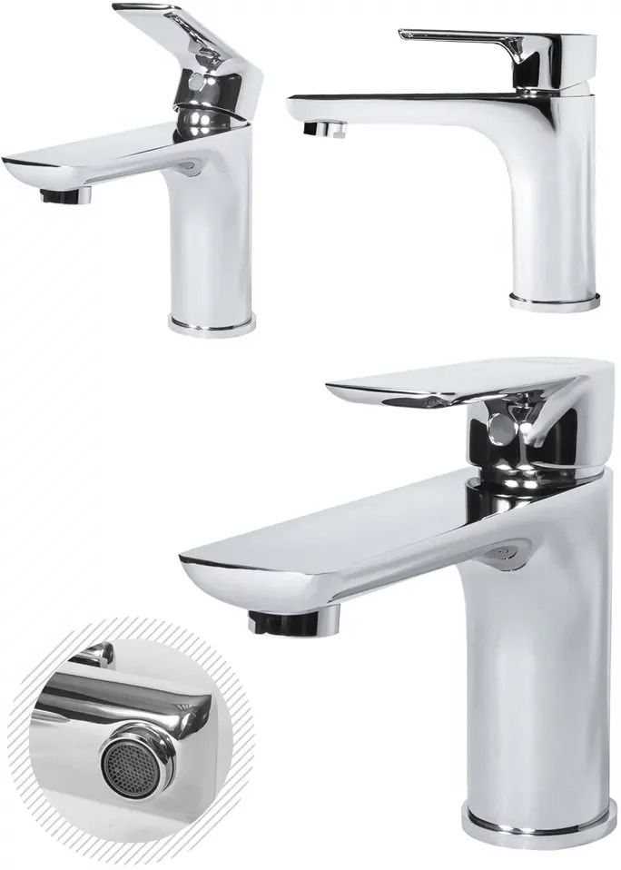 Набор смесителей 3 в 1 для ванны с коротким изливом Grocenberg GB1009CR: смеситель для раковины + смеситель для ванны + душевой гарнитур, материал латунь, цвет хром.