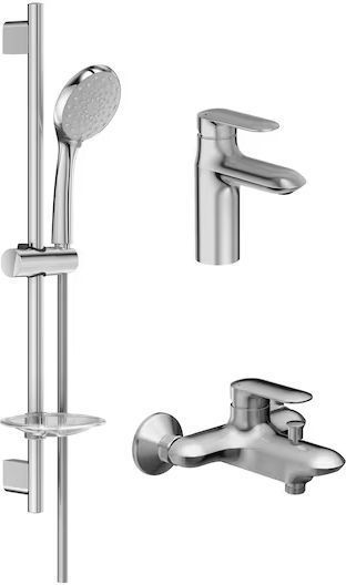 Набор смесителей 3 в 1 для ванны с коротким изливом Jacob Delafon Kumin E99900RU-CP: смеситель для раковины  + смеситель для ванны + душевой гарнитур.