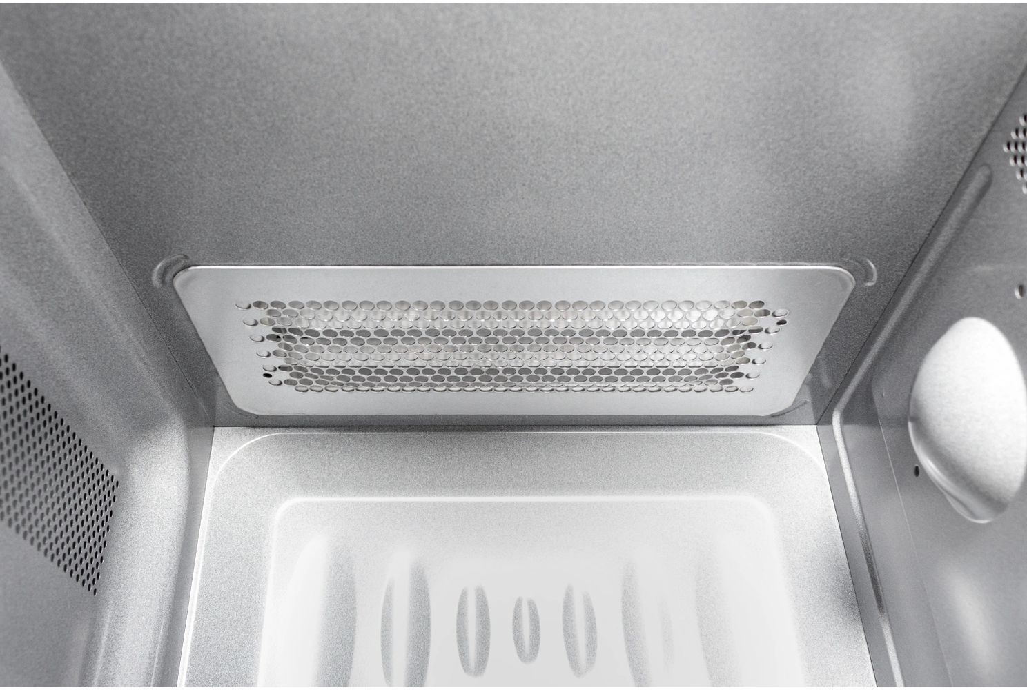 - Еще одно уникальное преимущество модели — стеклокерамическое дно без поворотного стола. Оно простое в уходе и безопасно в использовании, на гладкую поверхность можно поставить посуду любой формы и размеров, а также разогревать несколько блюд одновременно.