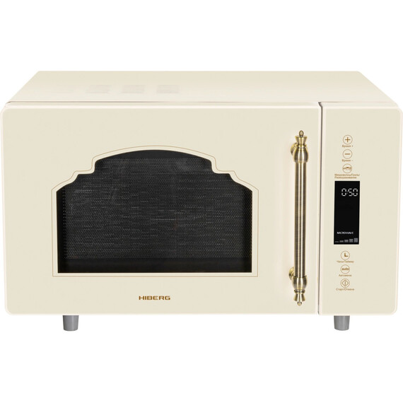 - Микроволновая печь HIBERG i-VM 4588 YR с инверторной технологией работы имеет объем 25 литров, стеклокерамическое дно без поворотного стола, сенсорное управление, таймер и безопасный кварцевый гриль.