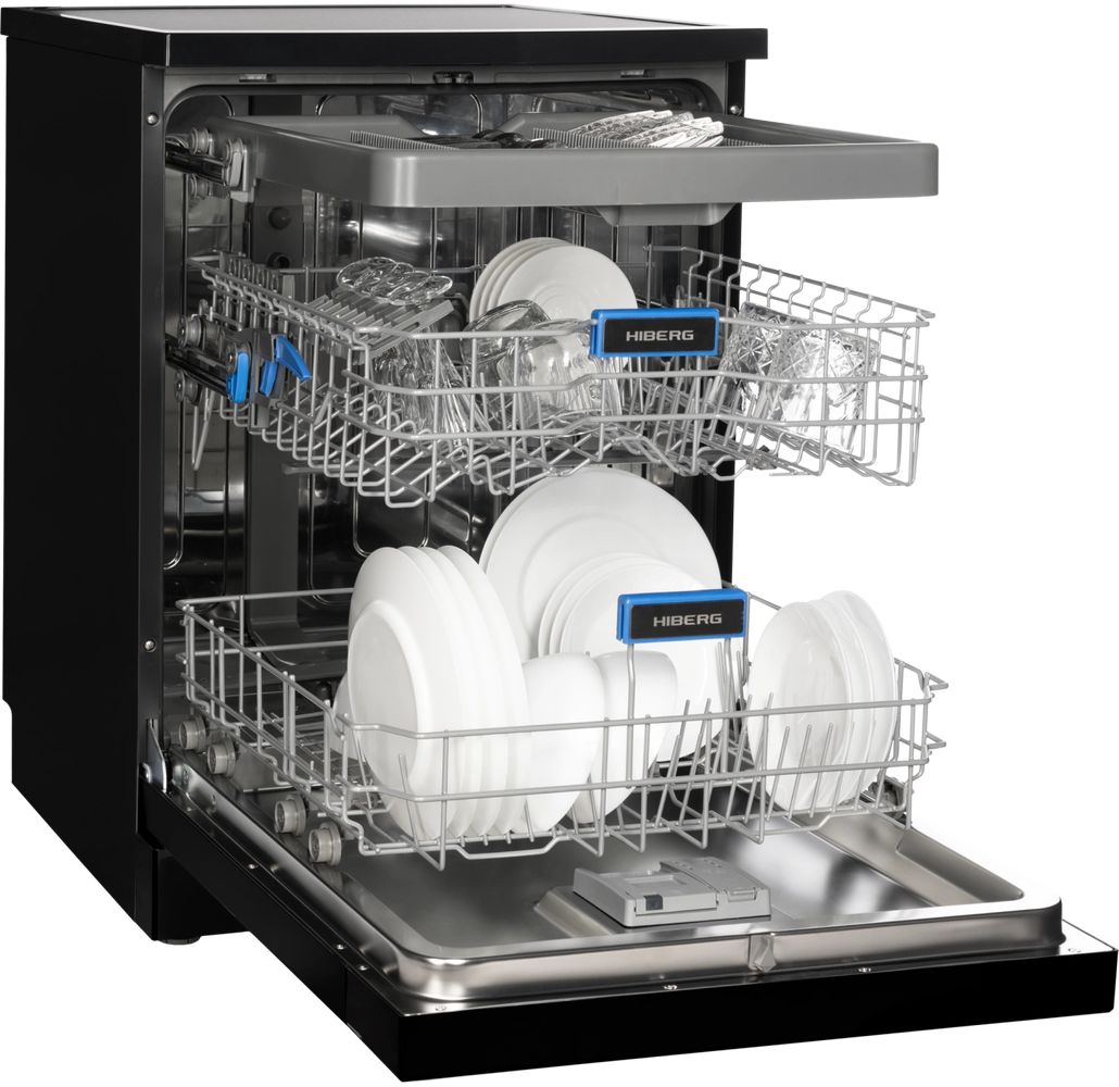 Отдельностоящая посудомоечная машина HIBERG i-Q 6815 LB с возможностью встраивания – это лёгкость и удобство ухода за посудой каждый день. Просторная, стильная и продуманная до мелочей, она бережно справляется со всем объёмом работы, чтобы ваша кухня всегда радовала чистотой и порядком.
