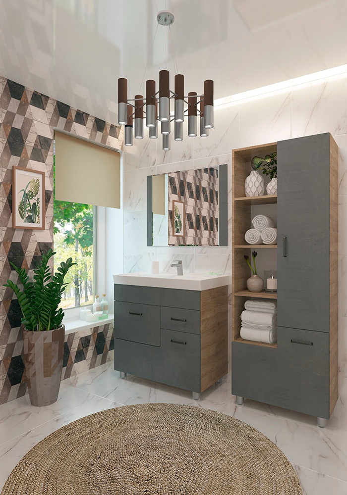 Пенал напольный EvaGold Catherine EG010127 600х1760х370 мм, цвет серый камень.
