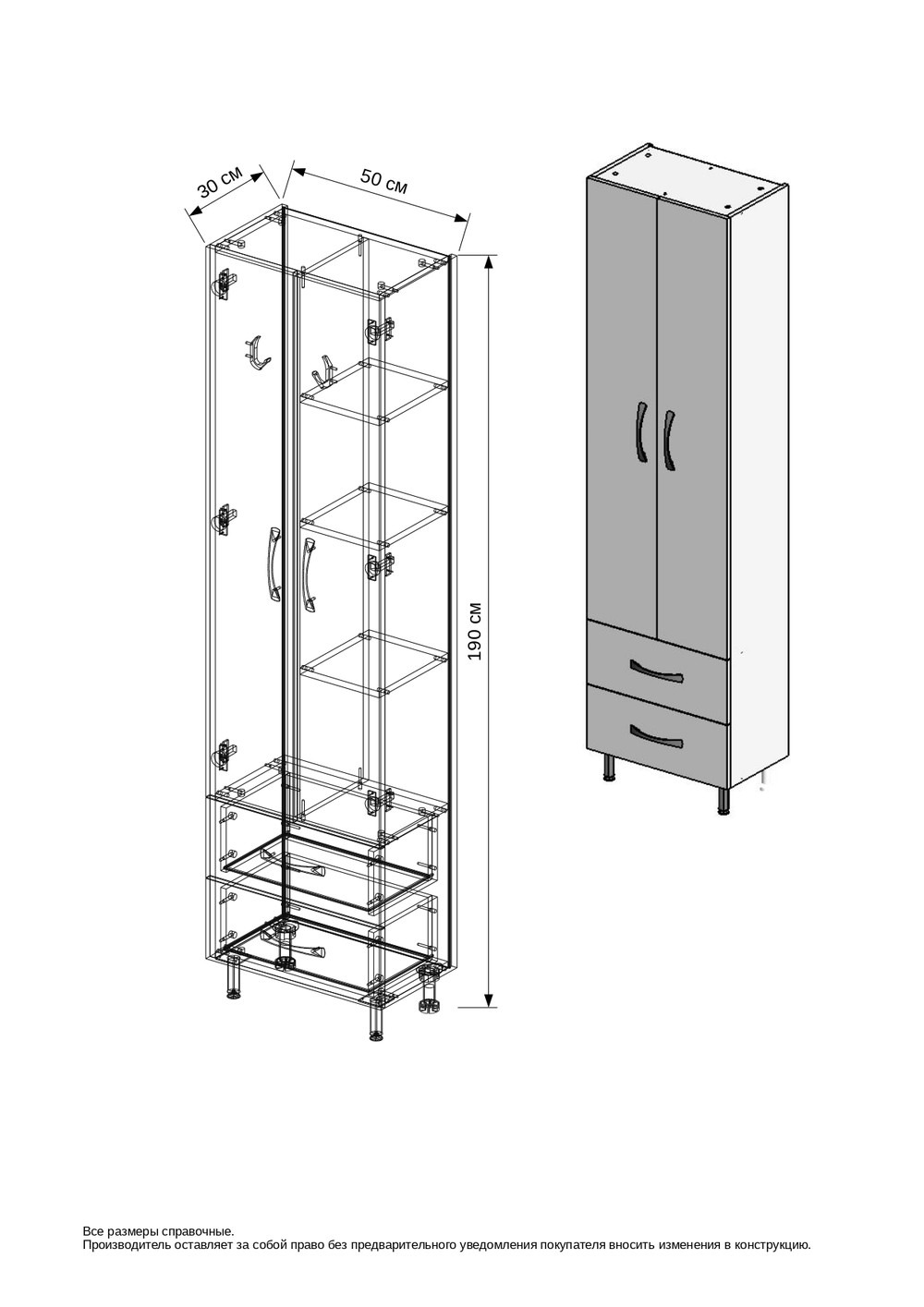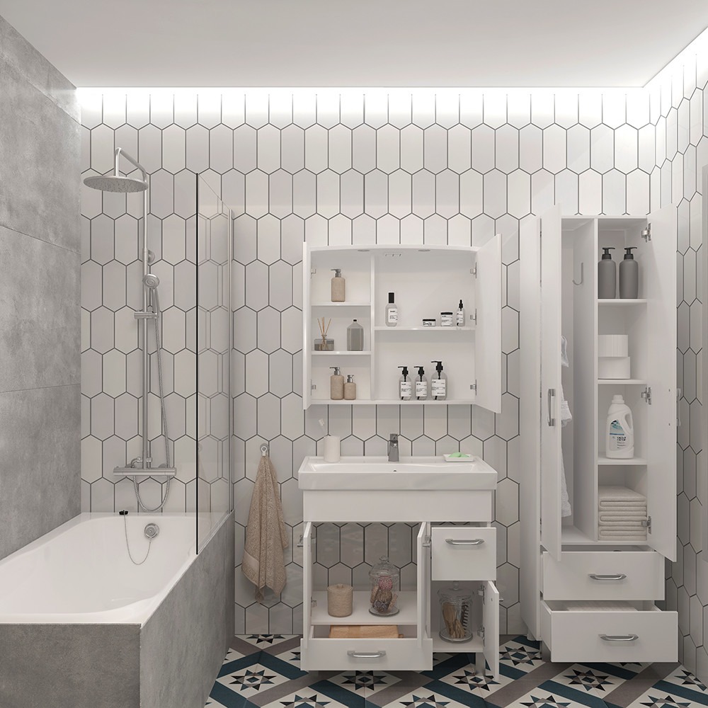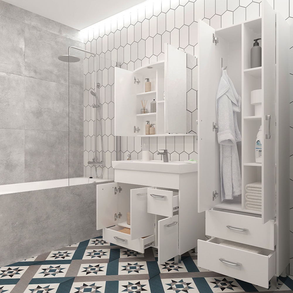 Пенал напольный EvaGold Cosmo EG010075 500х1900х300 мм, цвет белый глянец.