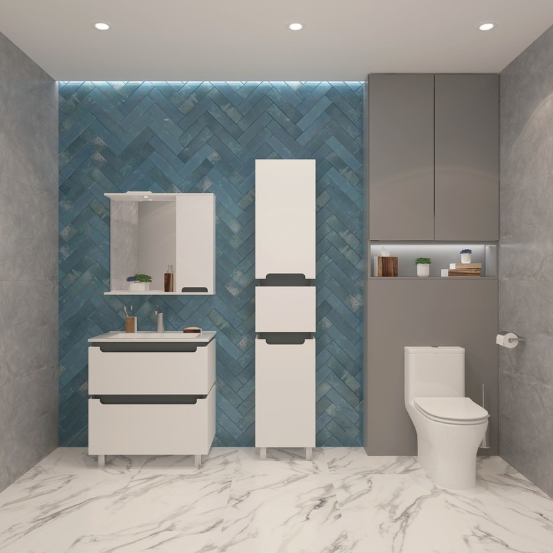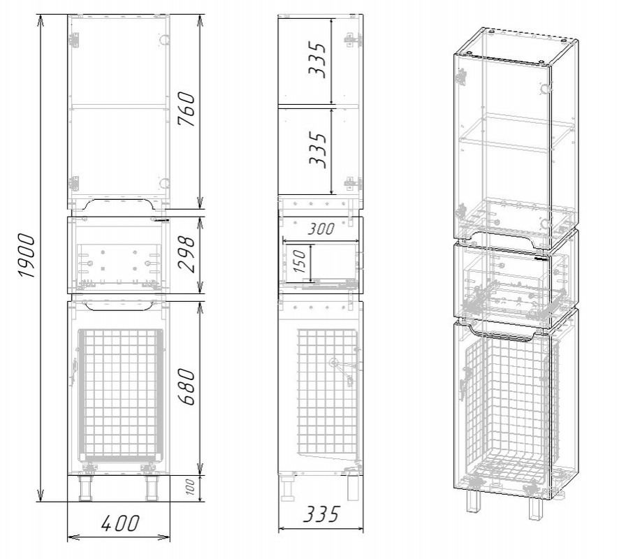 Пенал напольный EvaGold Vesta EG010420 400х1900х335 мм, с бельевой корзиной и ножками, цвет белый/графит.