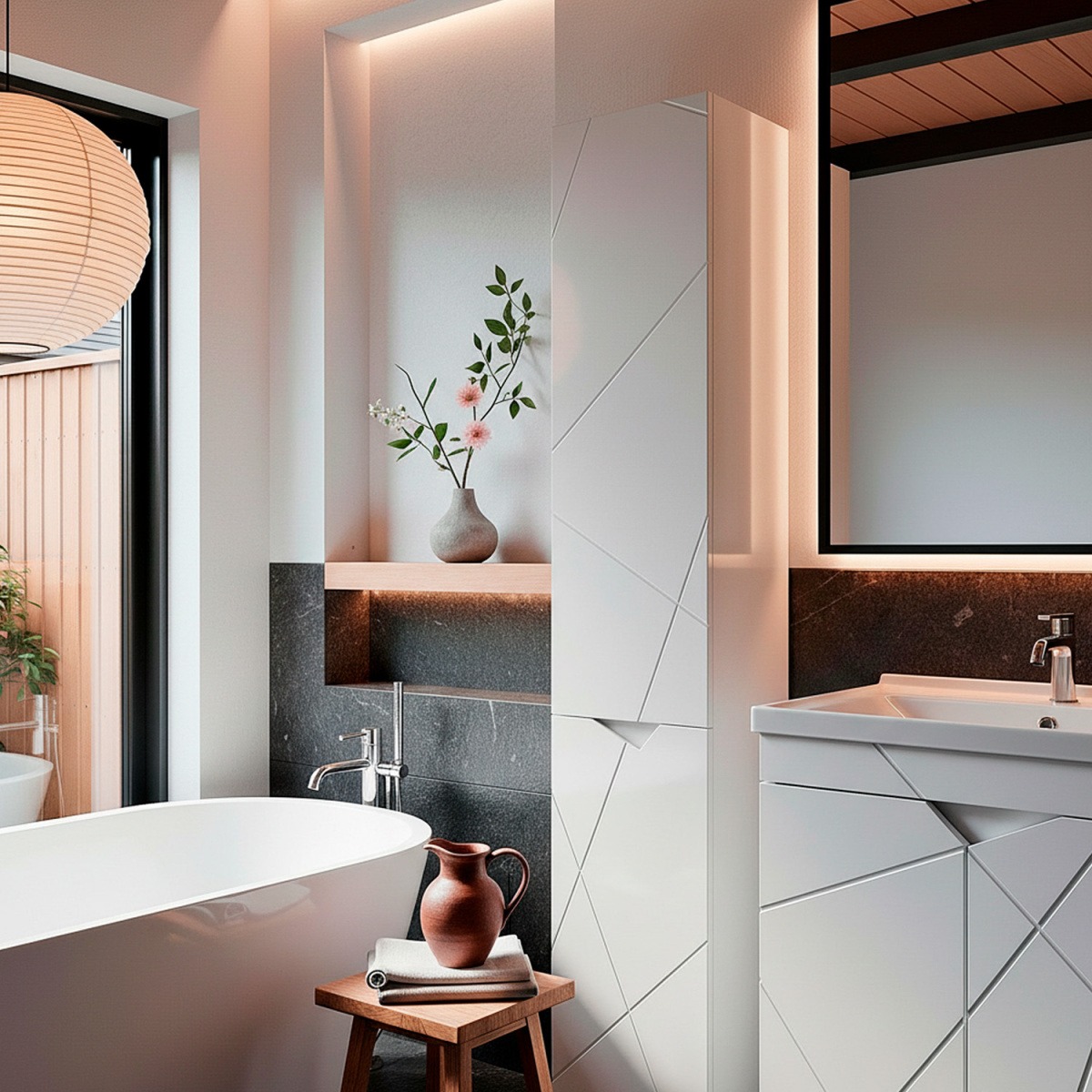 - Универсальная ориентация пенала обеспечивает удобство установки в любом углу ванной комнаты.