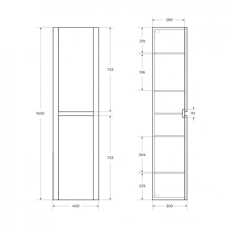 Характеристики пенал BelBagno (RELAX-1500-2A-SO-GM)