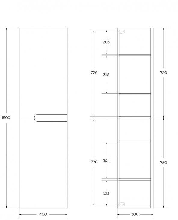 Характеристики пенал Cezares (DUET-N-1500-2A-SC-APR-P)