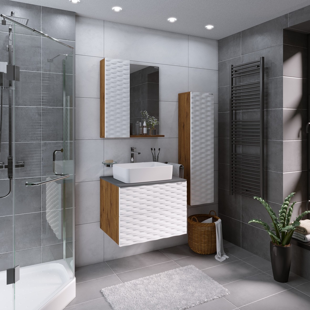 Пенал подвесной Grossman Альба 30 см 303009, цвет веллингтон/белый.