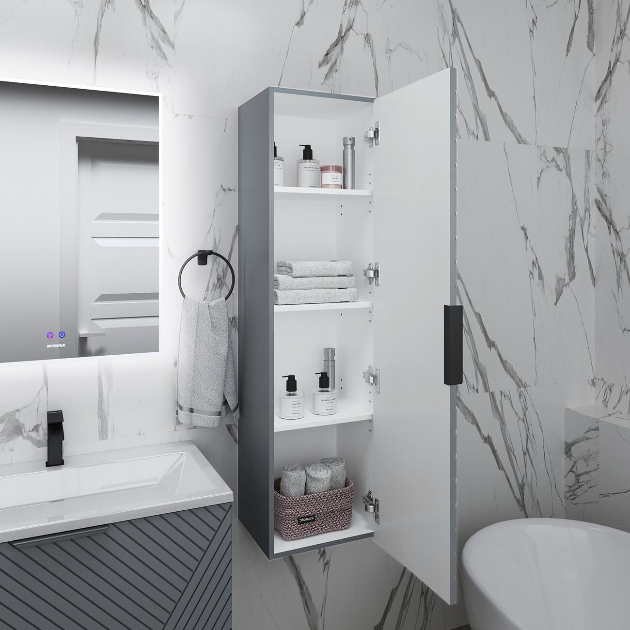 Пенал подвесной Grossman Блисс 37 см 303546, цвет графит матовый.