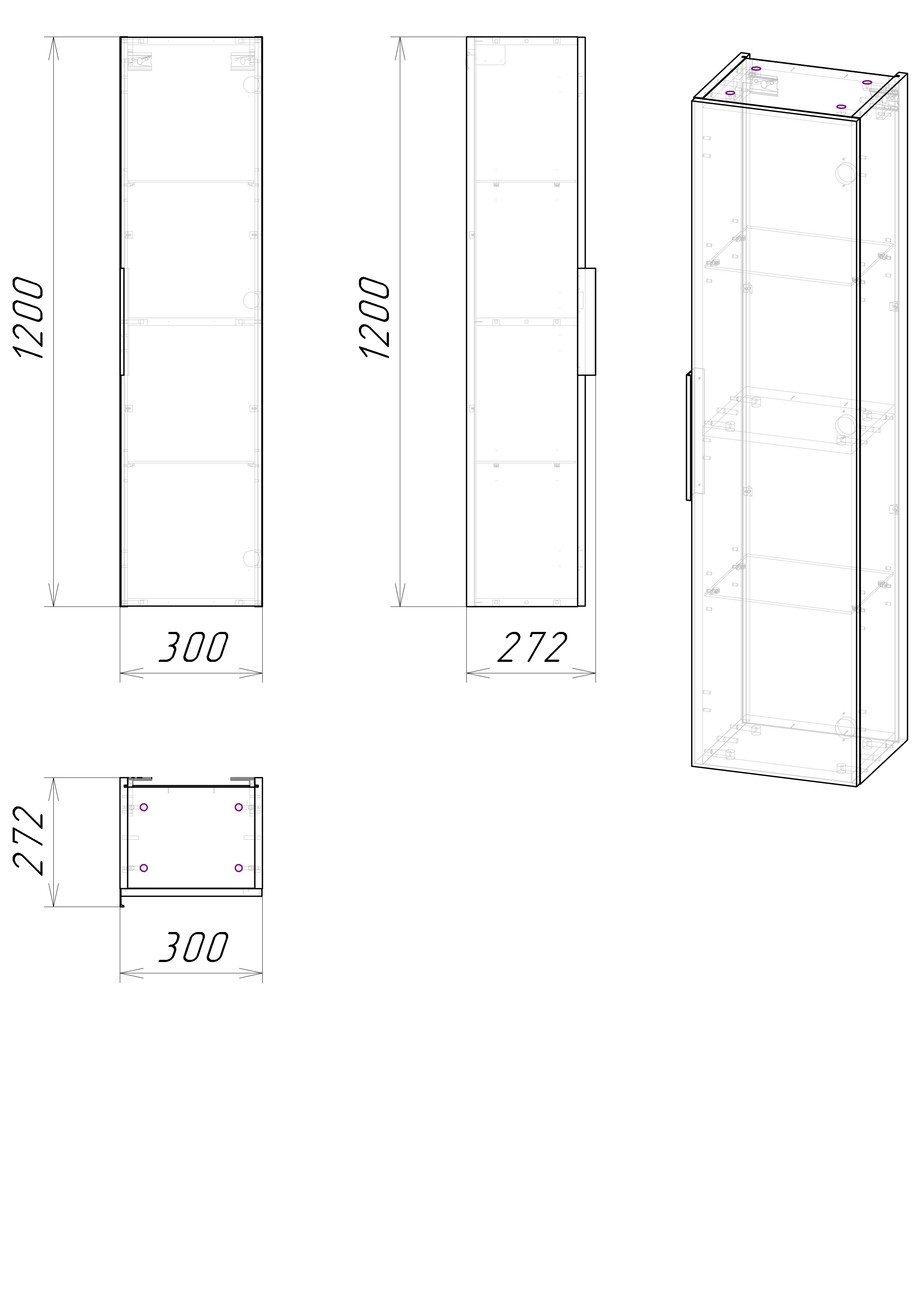 Пенал подвесной Grossman Кросс 30 см 303006, бетон
