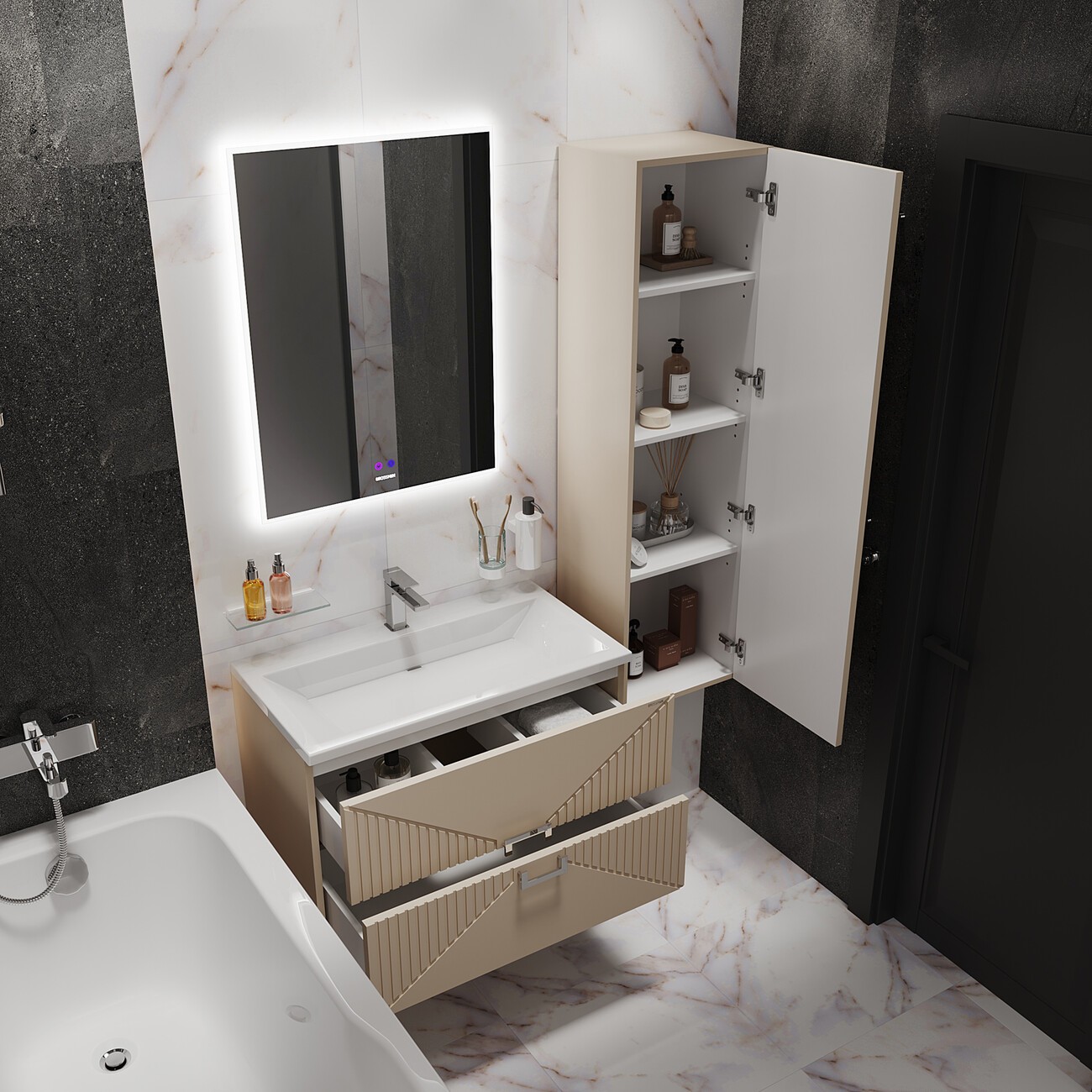 Пенал подвесной Grossman Луксор 42 см 303551, цвет бежевый матовый.
