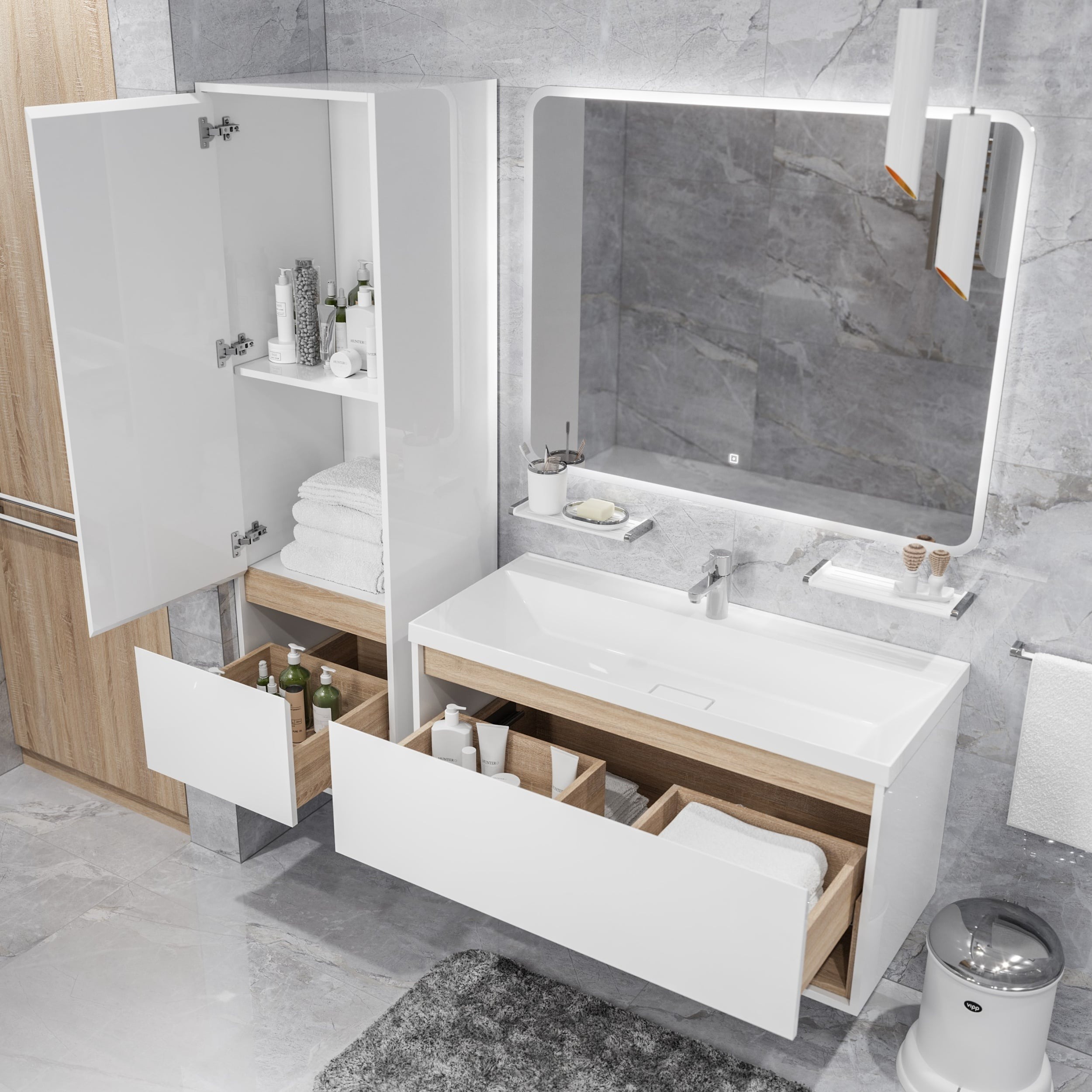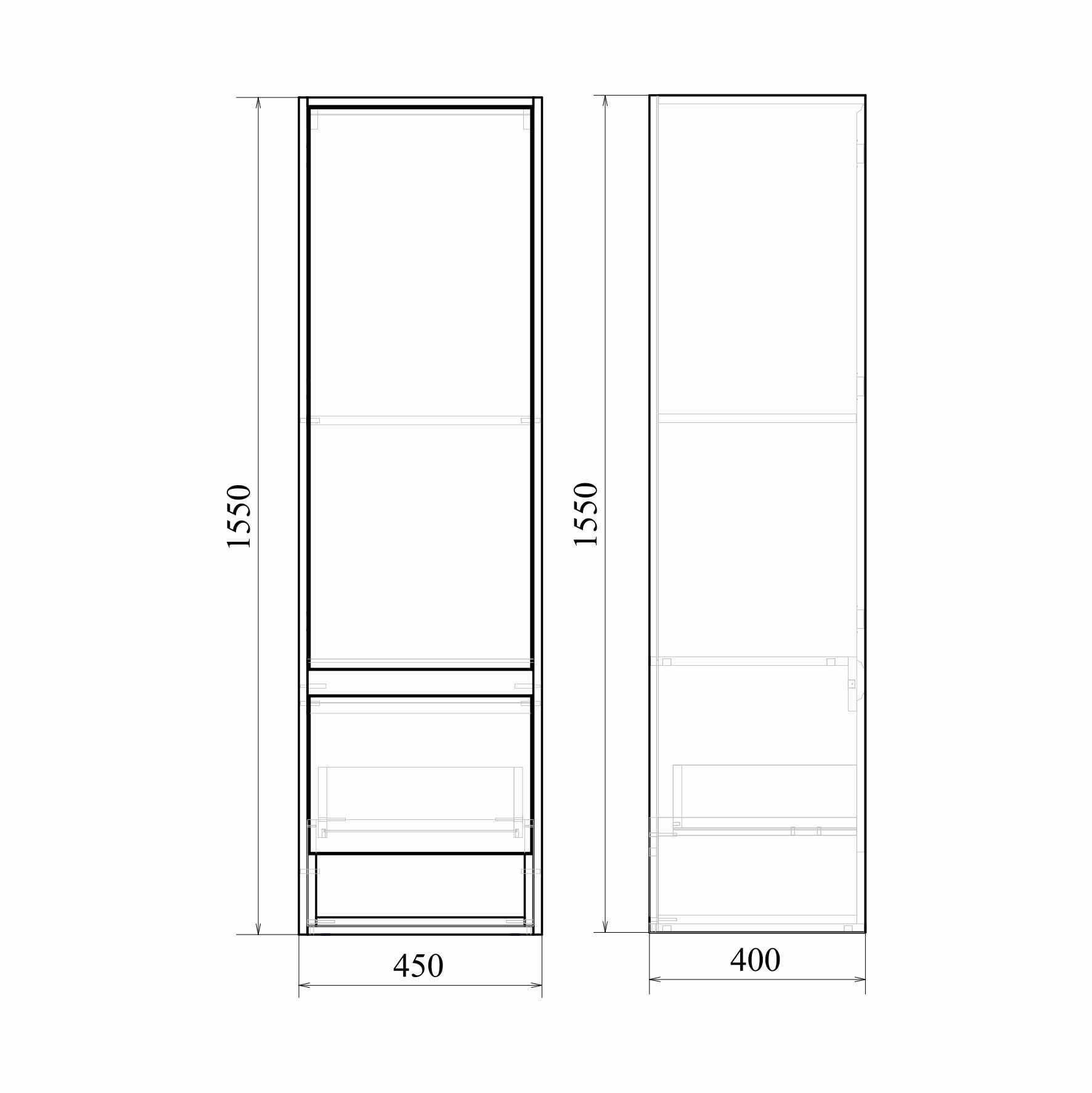 Пенал подвесной Mirsant Scandy 45, размер 450х400х1550 мм, цвет белый.