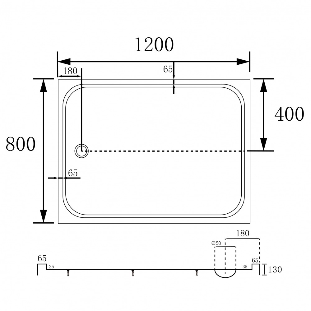 Душевой поддон Abber AD3C128, металлические ножки, каркас и сифон в комплекте, размер 1200х800х130 мм, материал акрил. Цвет белый.