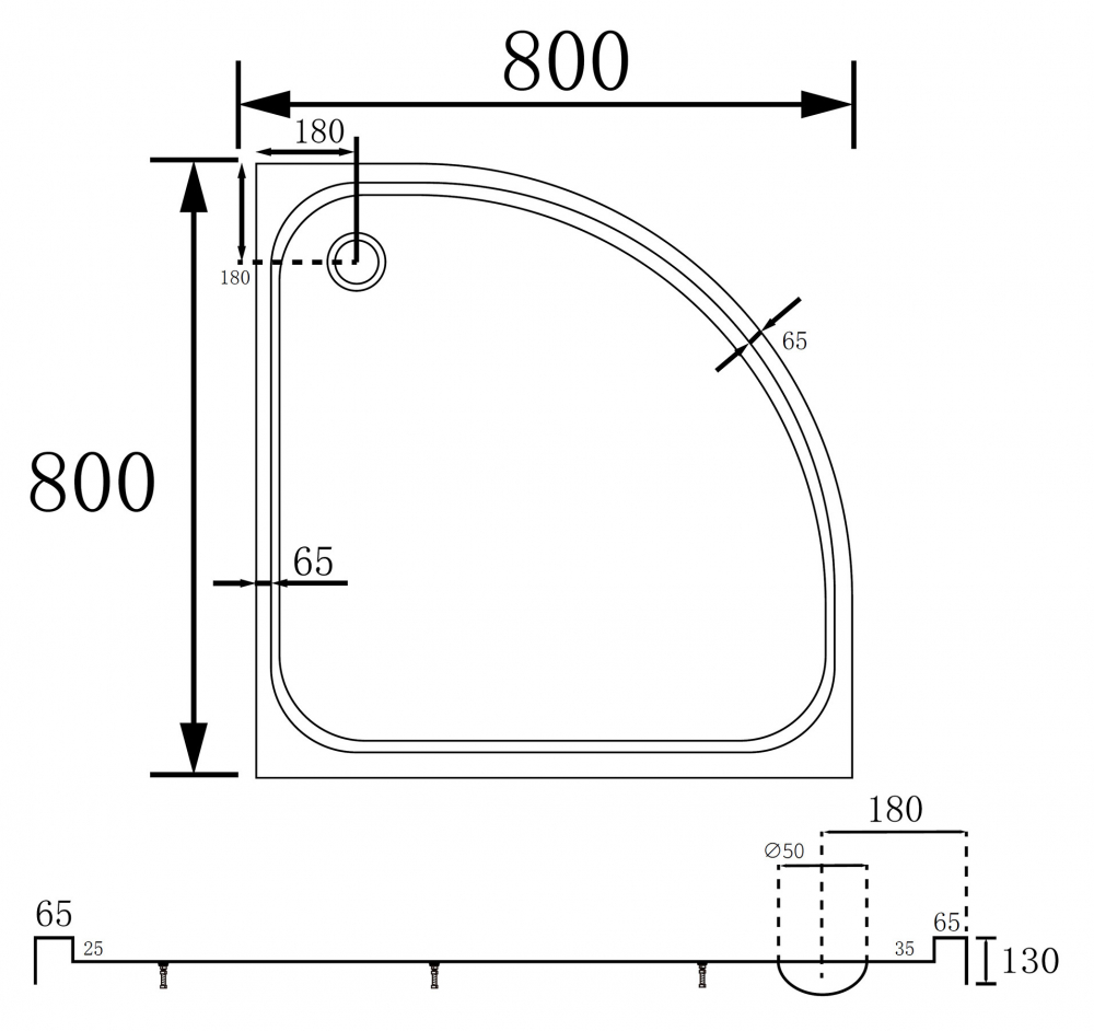 Душевой поддон Abber AD3A080, металлические ножки, каркас и сифон в комплекте, размер 800х800х130 мм, материал акрил. Цвет белый.