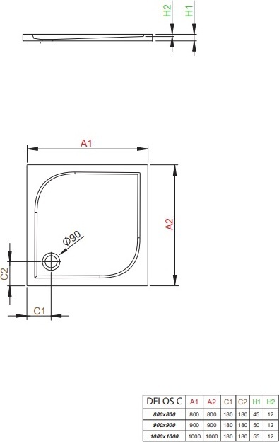 Душевой поддон Radaway Delos C800 800*800*45 мм. Цвет - белый, материал - акрил. Отверстие под сифон - 90 мм.