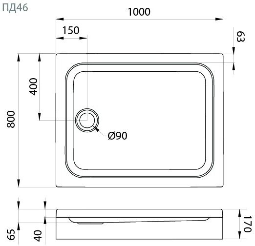 Душевой поддон Тритон, размер 1000х800х170 мм, диаметр слива 90 мм, материал акрил, цвет белый.
