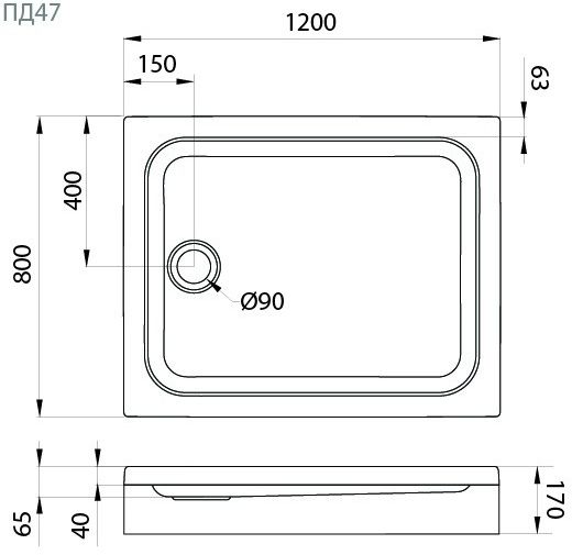 Душевой поддон Тритон, размер 1200х800х170 мм, диаметр слива 90 мм, материал акрил, цвет белый.