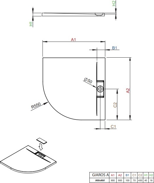 Душевой поддон Radaway Giaros A90 900*900*40 мм. Цвет - белый, материал - литьевой мрамор. Отверстие под сифон - 50 мм. Ножки в комплекте.