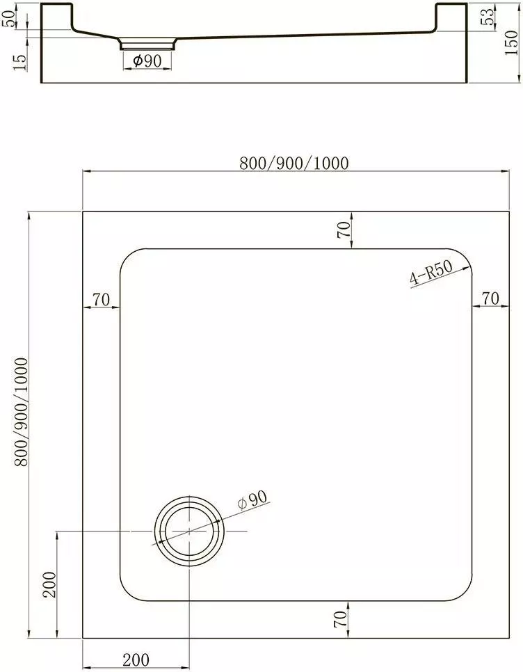 Душевой поддон Veconi Tezeo TZ-52B, размер 90х90 см, квадратный, материал акрил, сифон в комплекте, цвет черный.