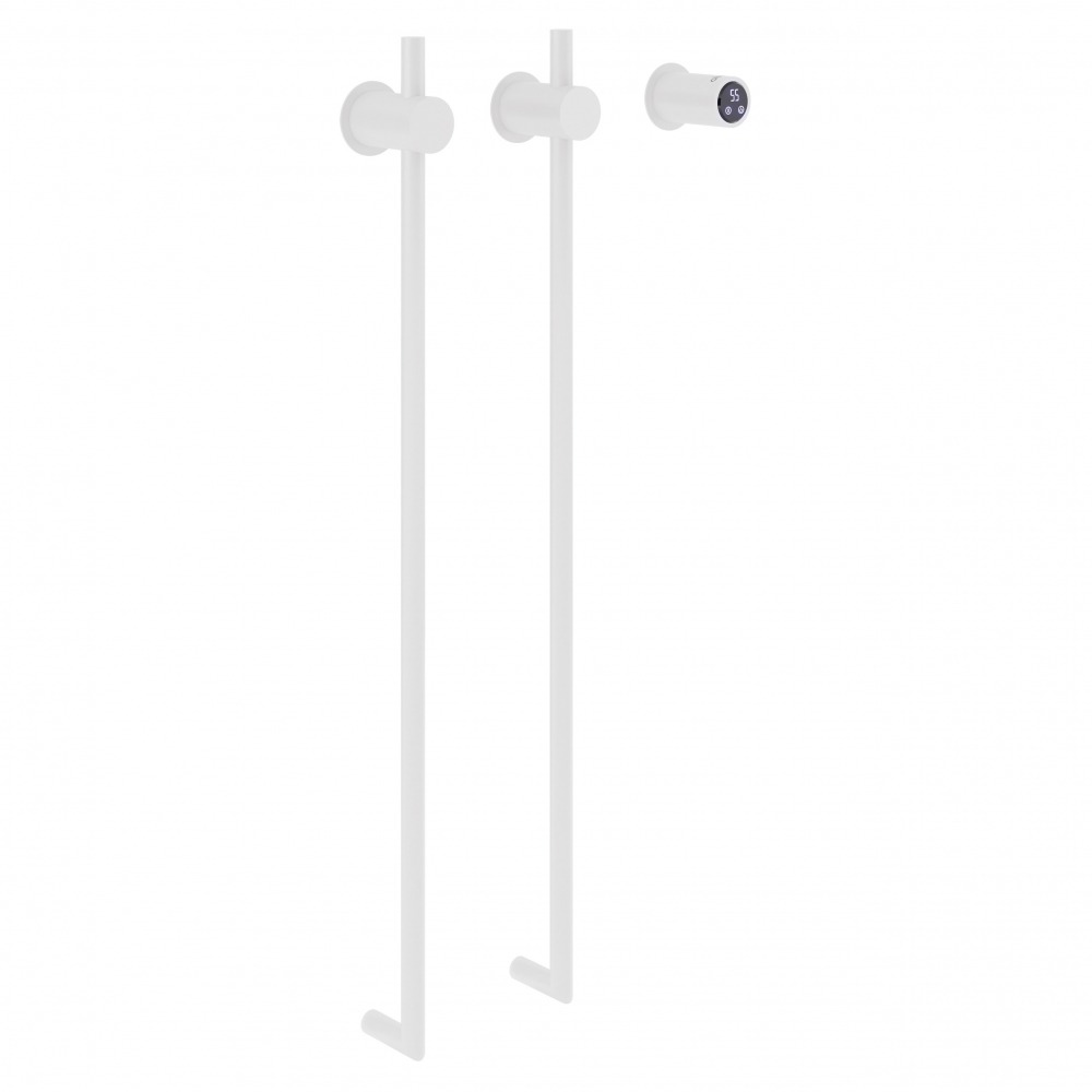 - Интеллектуальное управление. Встроенный терморегулятор и таймер дают возможность точно настраивать температуру (45−60 ∘С) и график работы полотенцесушителя.