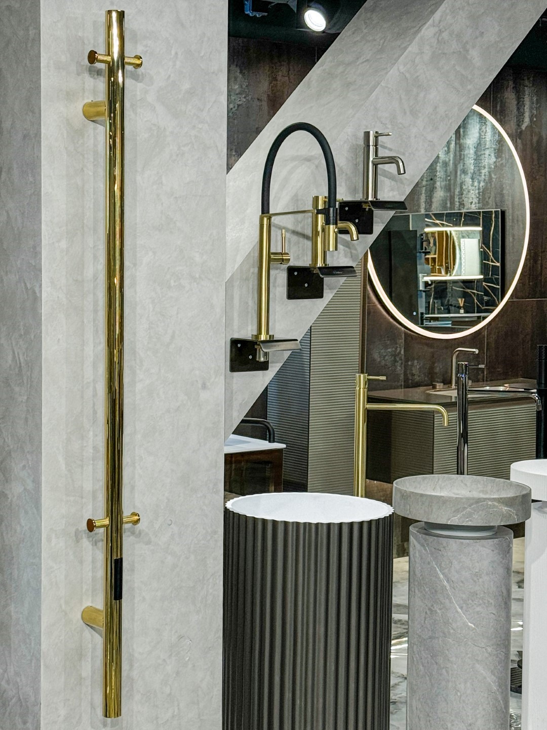 Новый электрический полотенцесушитель Boheme UNO выполнен из нержавеющей стали и дополнен рифлёным декором. Изящный минималистичный дизайн, диаметр 4,2см, высота 150см. Ну и конечно, все цвета.