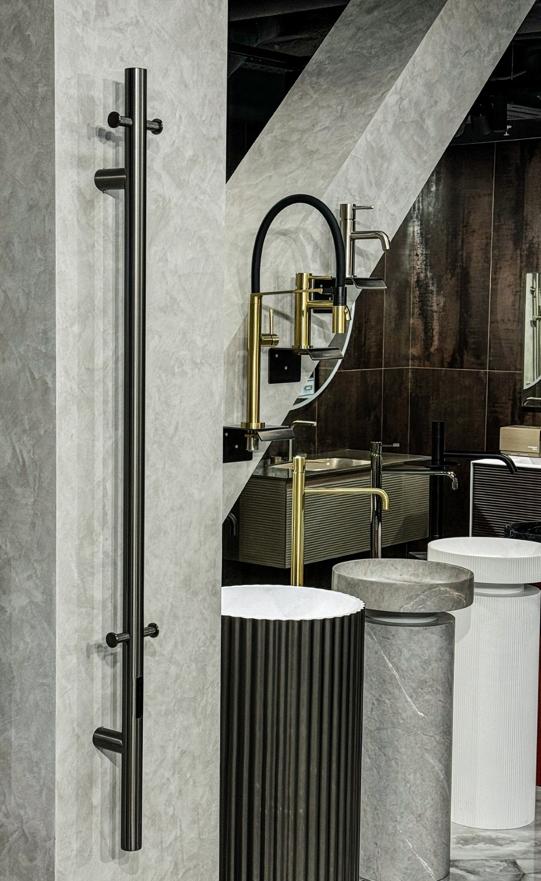 Новый электрический полотенцесушитель Boheme UNO выполнен из нержавеющей стали и дополнен рифлёным декором. Изящный минималистичный дизайн, диаметр 4,2см, высота 150см. Ну и конечно, все цвета.