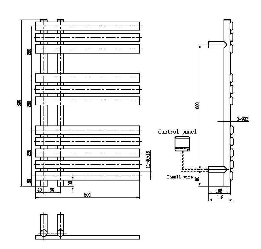 Полотенцесушитель электрический Boheme Venturo 723-MG, размер 500x800 мм, 11 перекладин, скрытое подключение слева, цвет золото матовое.