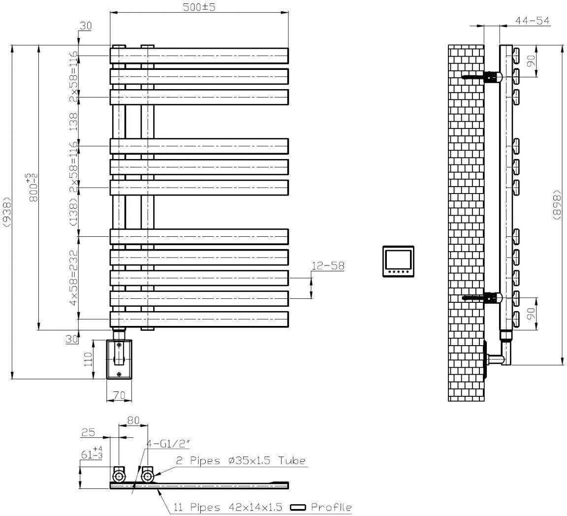 Полотенцесушитель электрический Boheme Venturo П11 80х900 мм 721-MW, matt white