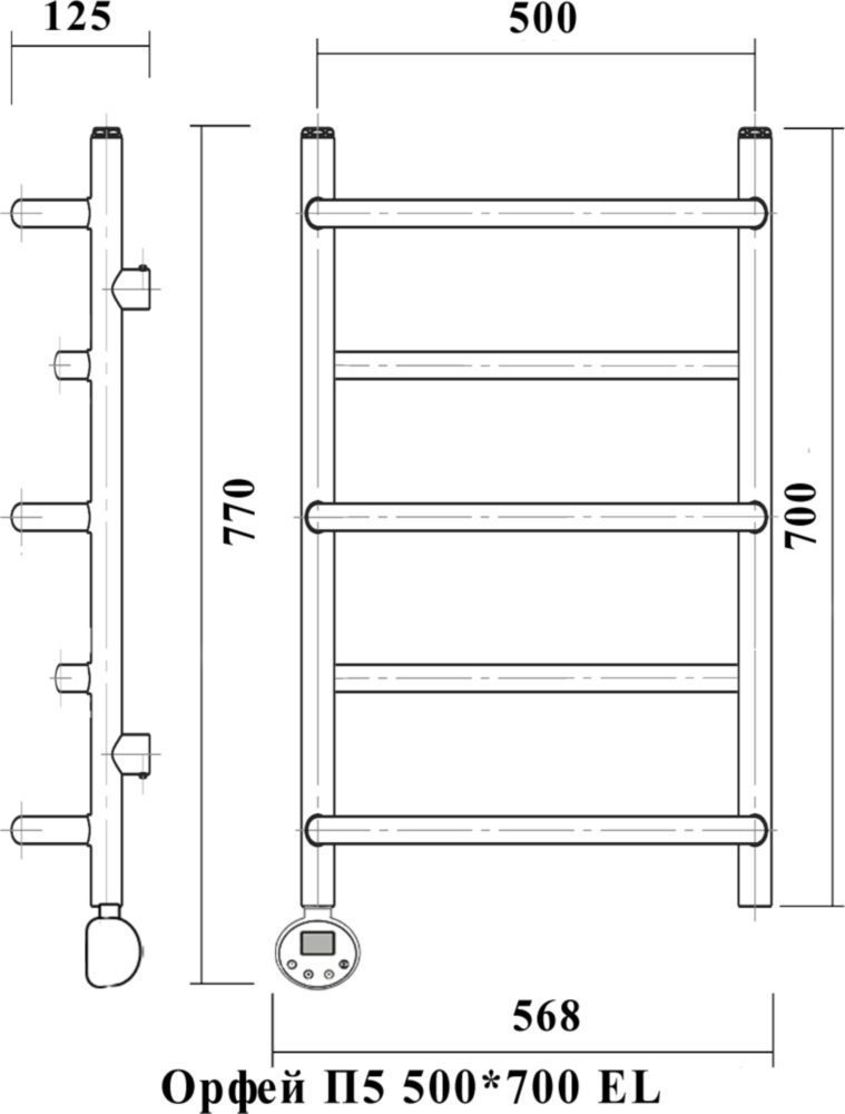 Полотенцесушитель электрический Domoterm Орфей, 5 перекладин, мощность 300 Вт.