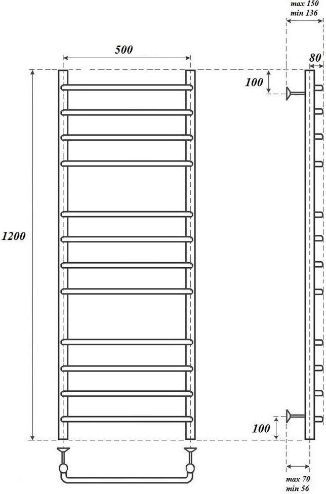 Полотенцесушитель электрический Point П12 500x1200 мм PN09152E (возможность скрытого подключения)