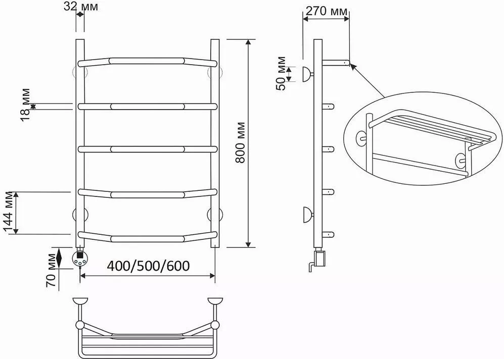 Полотенцесушитель электрический Secado Агата 3 с полкой П6 500x800 мм (возможность скрытого подключения) бронза
