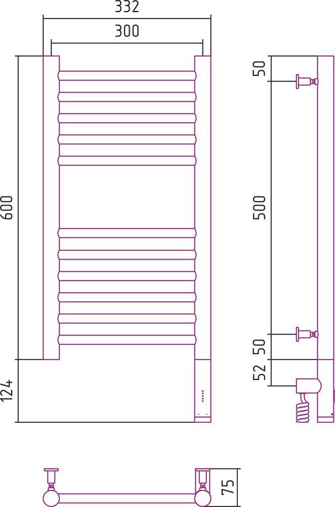 Электрический полотенцесушитель Сунержа Богема 3.0 600х300 мм, 11 перекладин(5-6). Мощность 300 Вт, цвет белый. Интегрированное в корпус скрытое подключение.