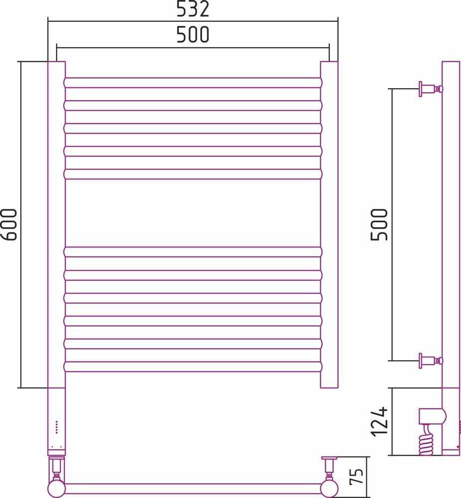Электрический полотенцесушитель Сунержа Богема 3.0 600х500 мм, 11 перекладин(5-6). Мощность 300 Вт. Скрытое подключение.