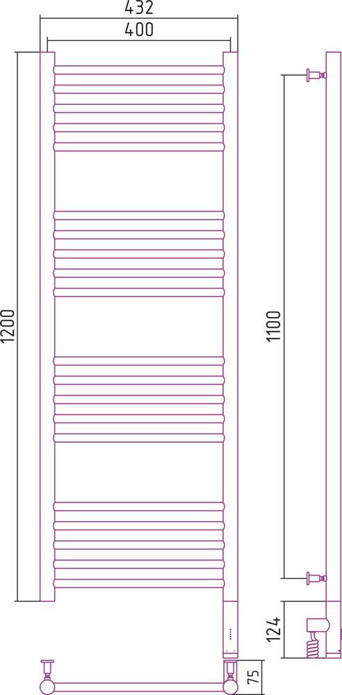 Электрический полотенцесушитель Сунержа Богема 3.0 1200х400 мм, 20 перекладин(5-5-5-5). Мощность 300 Вт. Скрытое подключение.