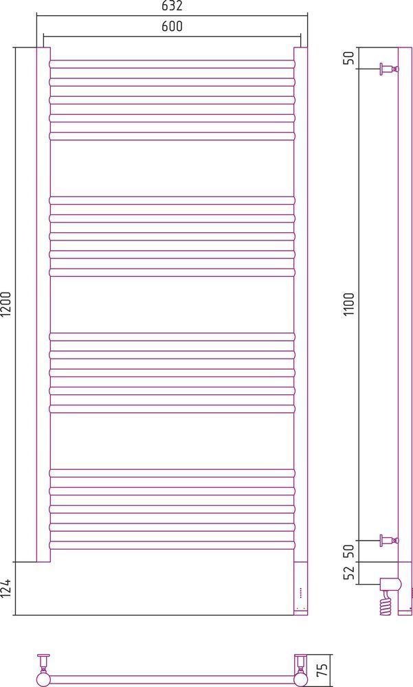 Электрический полотенцесушитель Сунержа Богема 3.0 1200х600 мм, 20 перекладин(5-5-5-5). Мощность 300 Вт, цвет белый. Интегрированное в корпус скрытое подключение.
