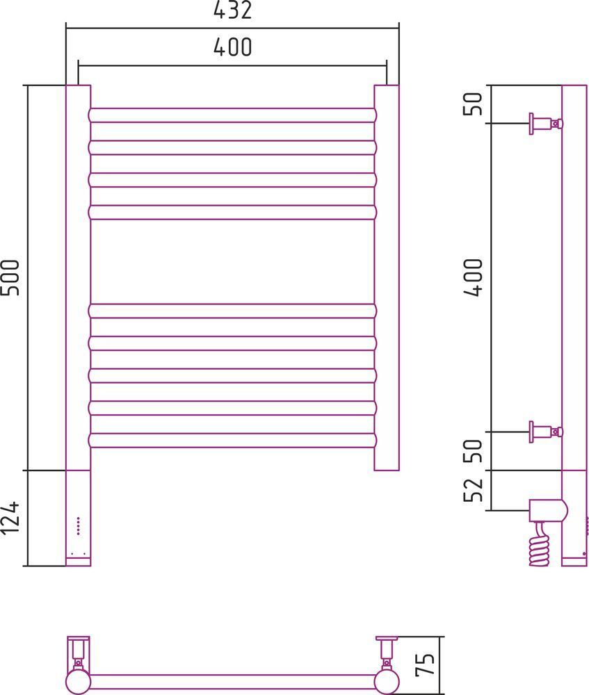Электрический полотенцесушитель Сунержа Богема 3.0 500х400 мм, 9 перекладин(4-5). Мощность 300 Вт, цвет сатин. Интегрированное в корпус скрытое подключение.