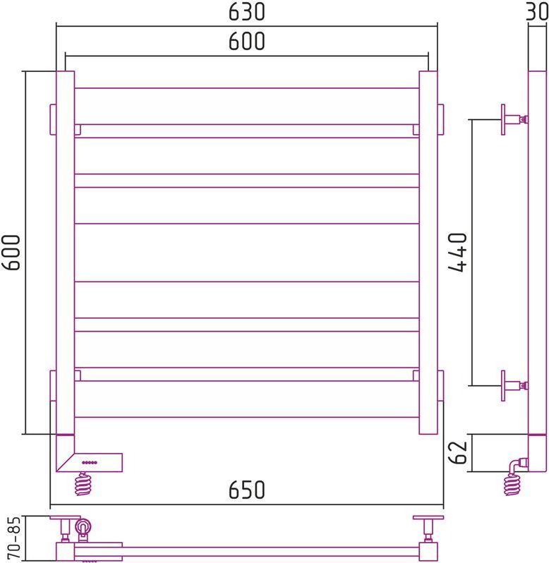 Полотенцесушитель электрический Сунержа Центурион 2.0, размер 662х650 мм, 6 перекладин(3-3). Мощность 300 Вт. Возможна установка модуля скрытого подключения.