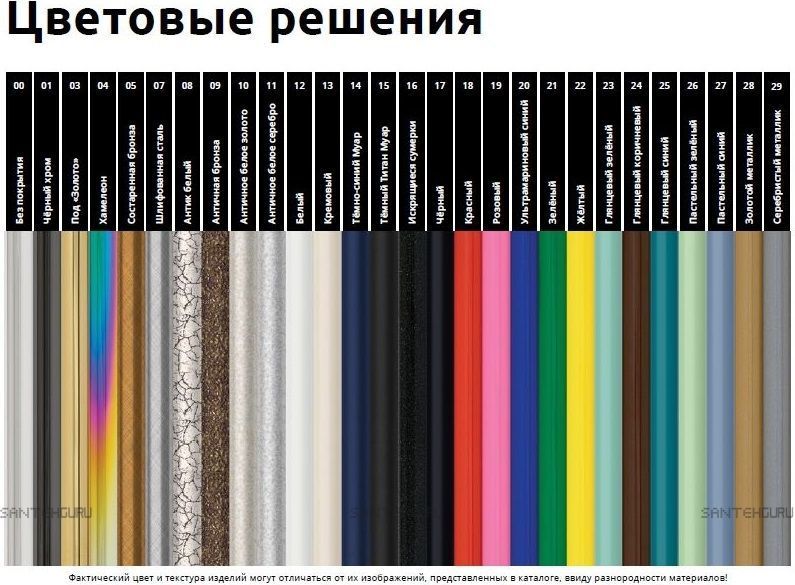 Возможна покраска изделия в широкий спектр цветовых решений, примеры палитры можно выбрать на картинке товара. Цена полотенцесушителя в зависимости от цвета может меняться. Цену уточняйте у менеджера.