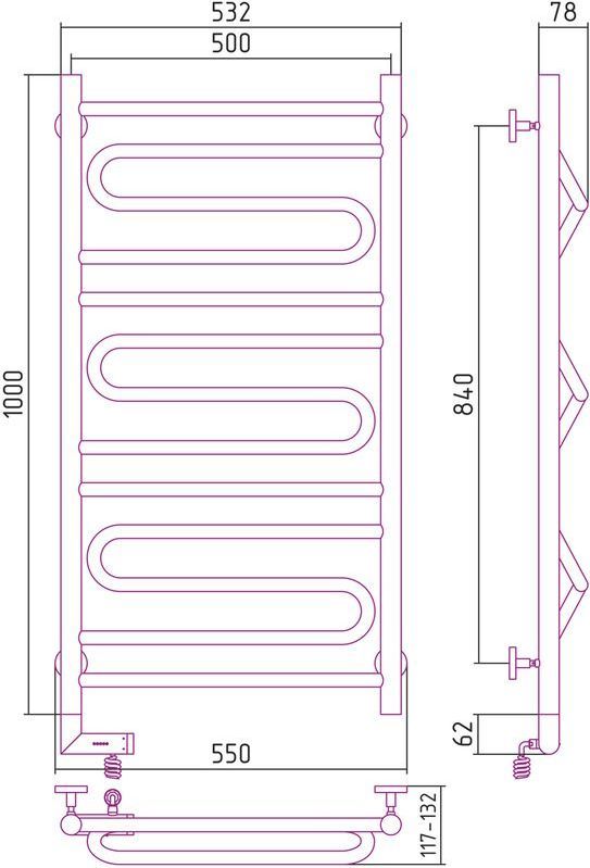 Полотенцесушитель электрический Сунержа Элегия 2.0, размер 1062х550 мм, 13 перекладин. Мощность 300 Вт. Возможна установка модуля скрытого подключения.