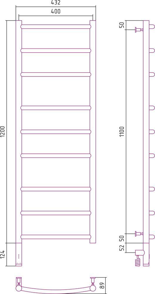 Полотенцесушитель электрический Сунержа Галант 3.0, размер 1200х400 мм, 3+3+3 перекладины. Мощность 300 Вт. Скрытое подключение.