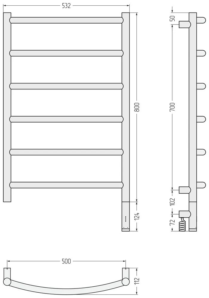 Полотенцесушитель электрический Сунержа Галант 3.1, размер 500х800 мм, 3+3 перекладины. Мощность 300 Вт, цвет золото. Скрытое подключение.
