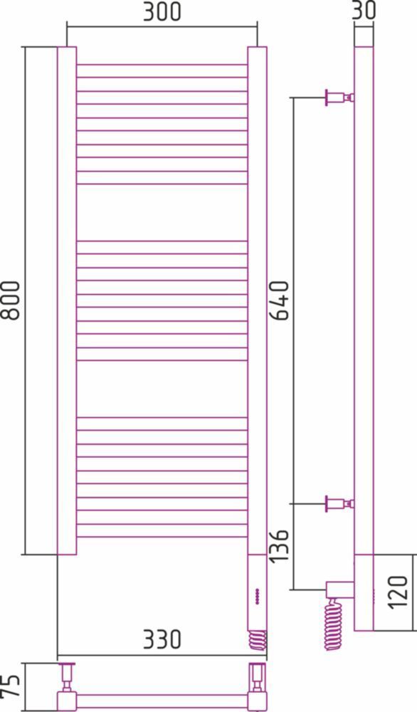 Полотенцесушитель электрический Сунержа Модус 3.0, размер 800х330 мм, 15 перекладин(5-5-5). Мощность 300 Вт. Возможна установка модуля скрытого подключения.