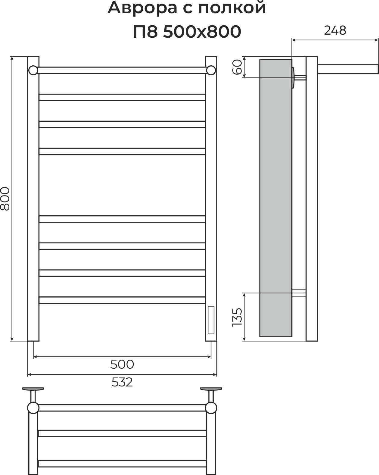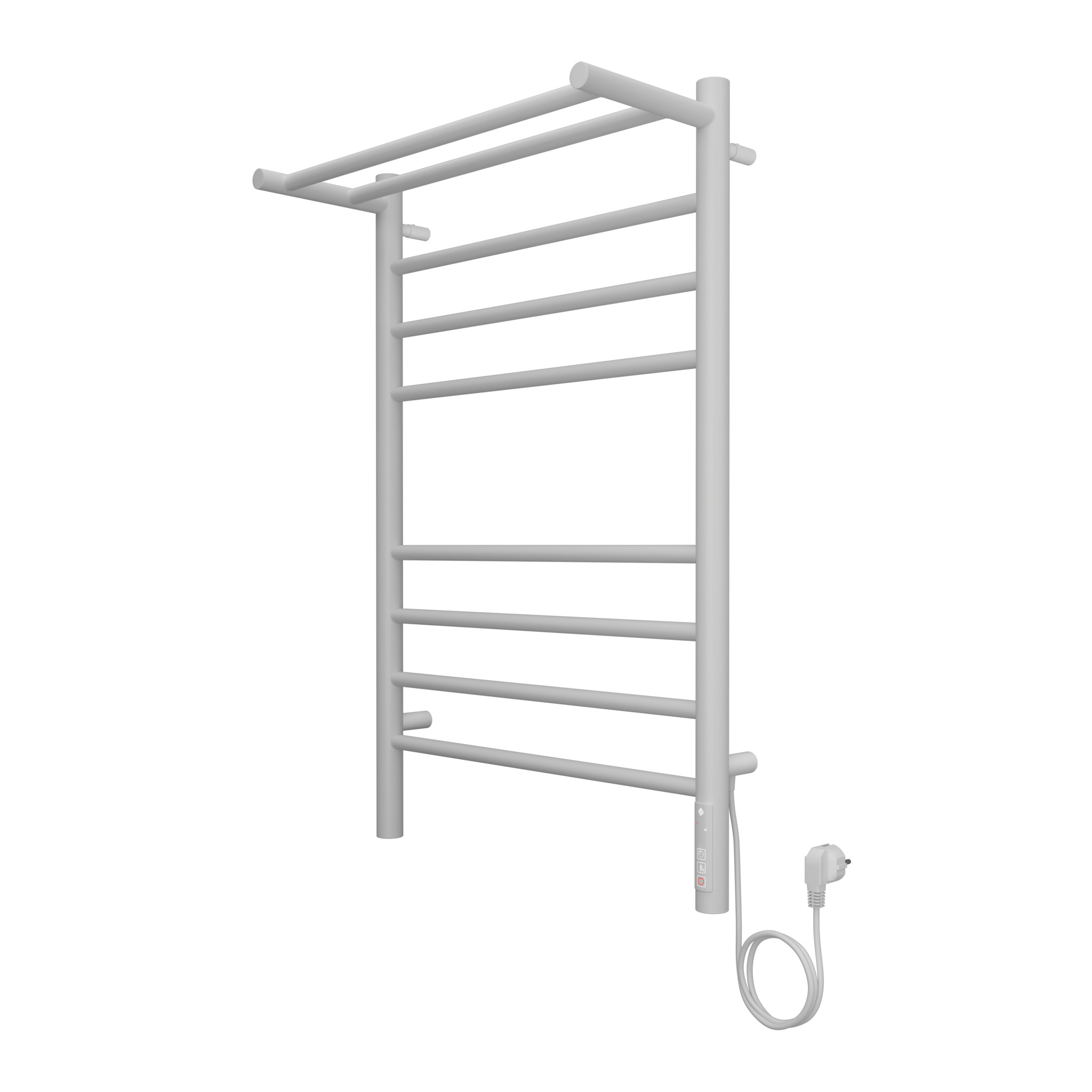 Полотенцесушитель электрический Terminus Аврора 4670078554208 с полкой, размер 532x800 мм, 8 перекладин, цвет белый матовый.