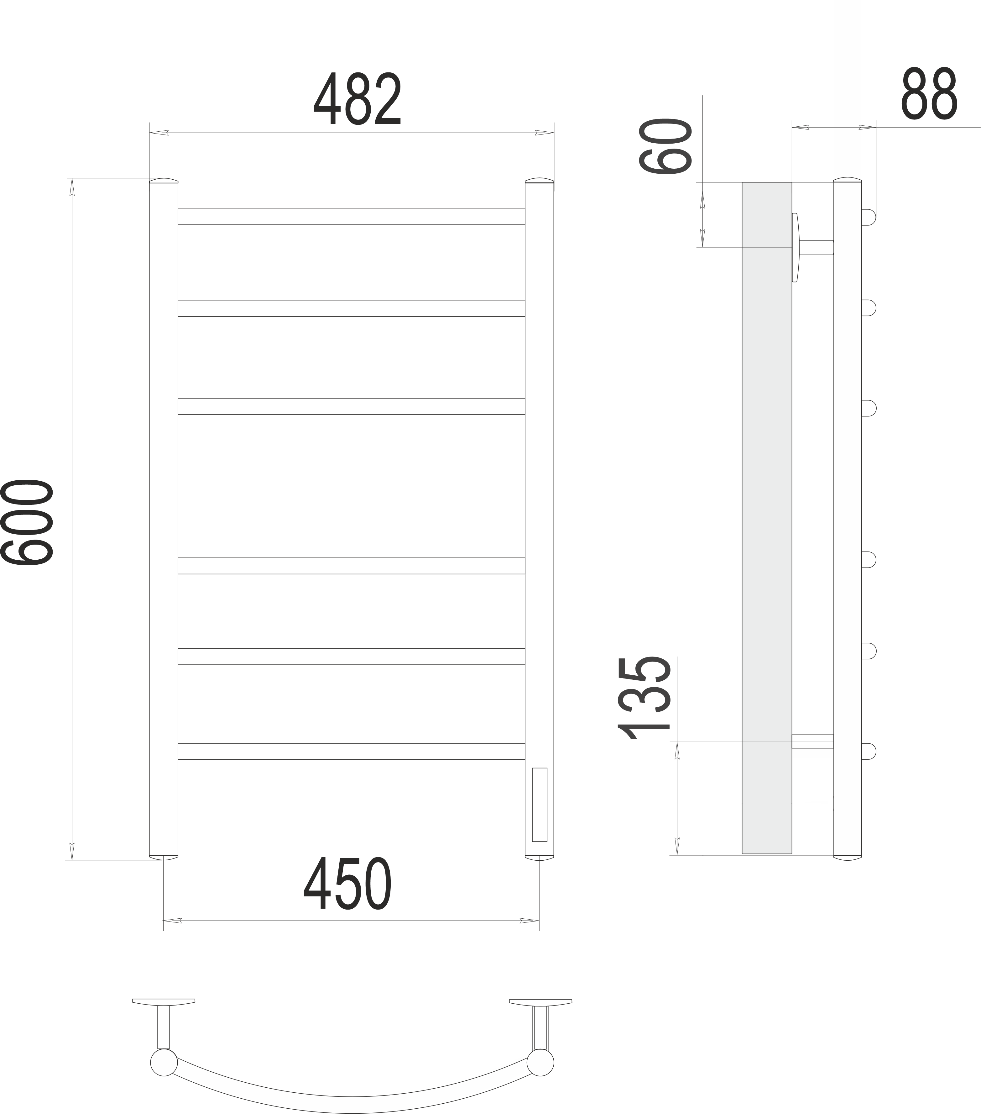 Полотенцесушитель электрический Terminus Классик П6 450x600 мм 4670078527578, чёрный матовый