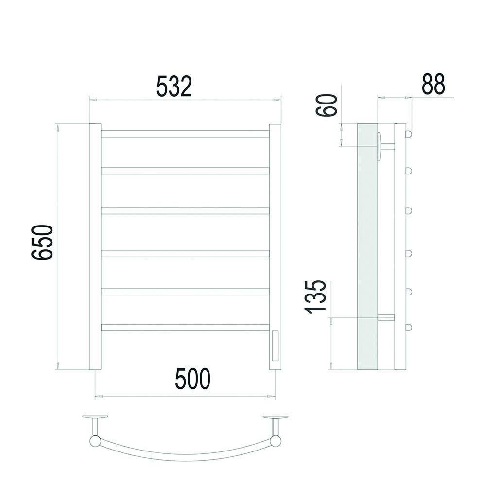 Полотенцесушитель электрический Terminus Классик П6 500x650 мм 4670078561404, сатин