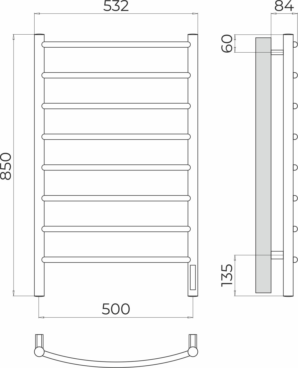 Полотенцесушитель электрический Terminus Классик П8 500x850 мм 4670078531360