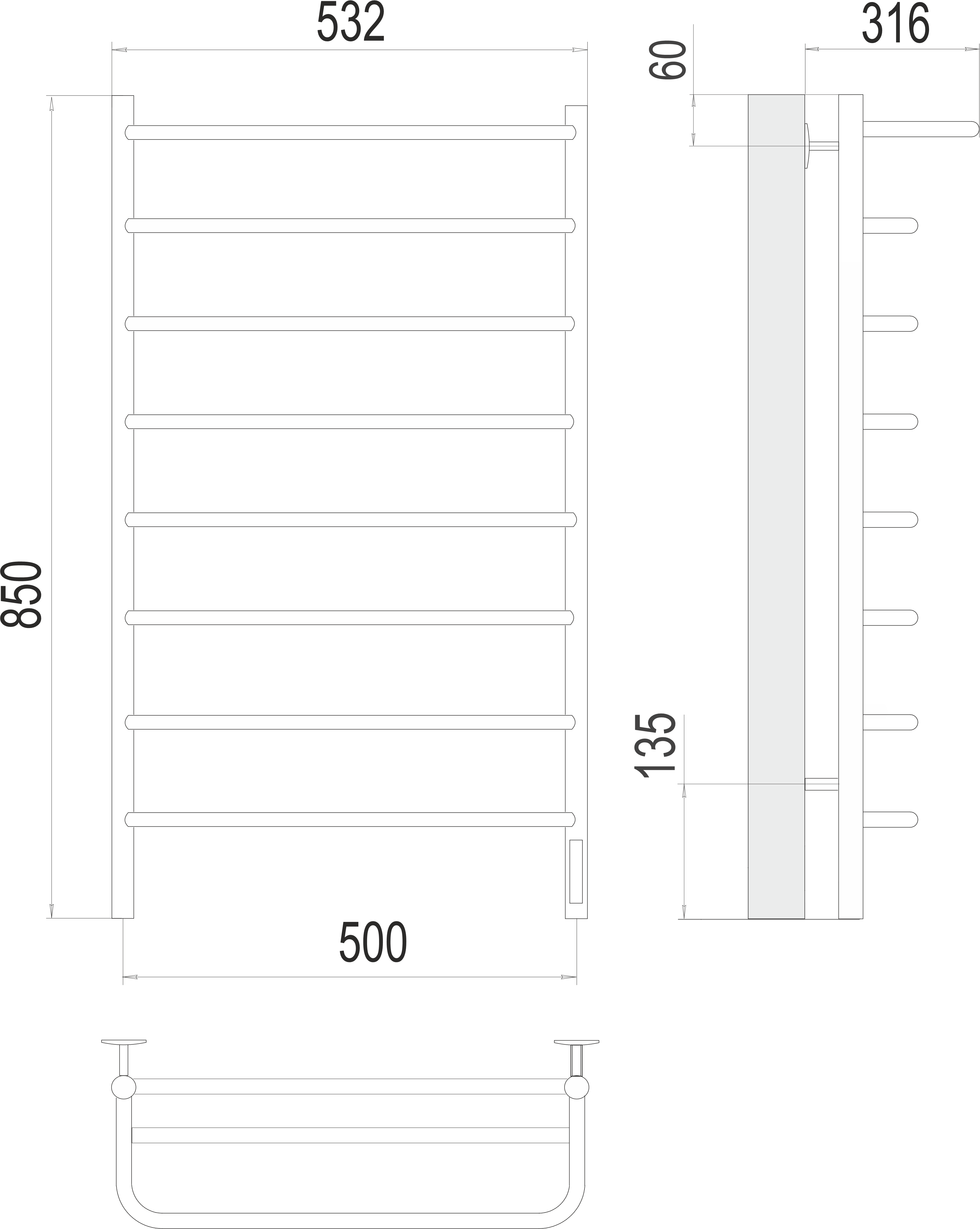 Полотенцесушитель электрический Terminus с полкой П8 500x850 мм 4670078524836