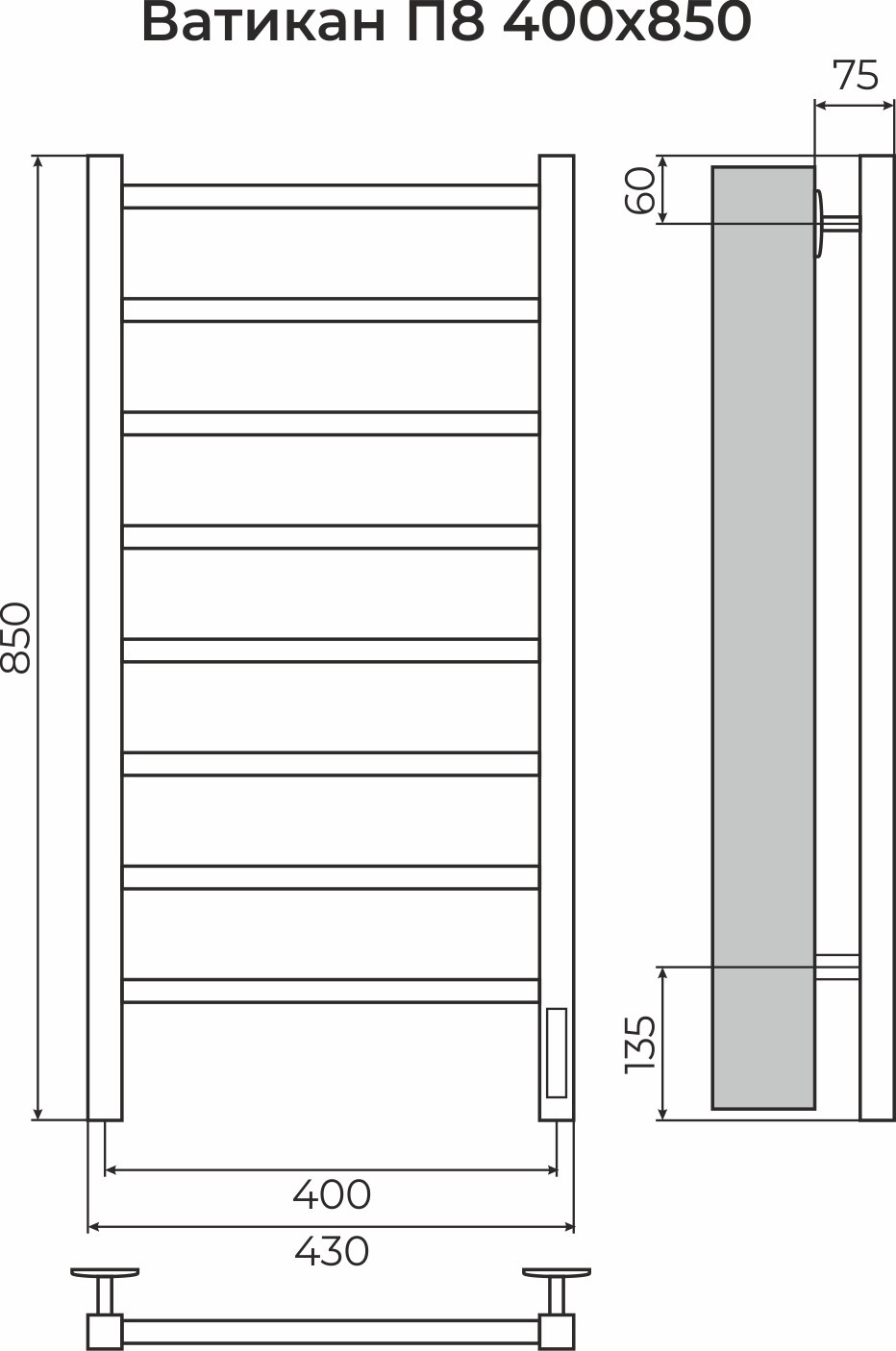 Полотенцесушитель электрический Terminus Ватикан П8 400x850 мм 4670078557155