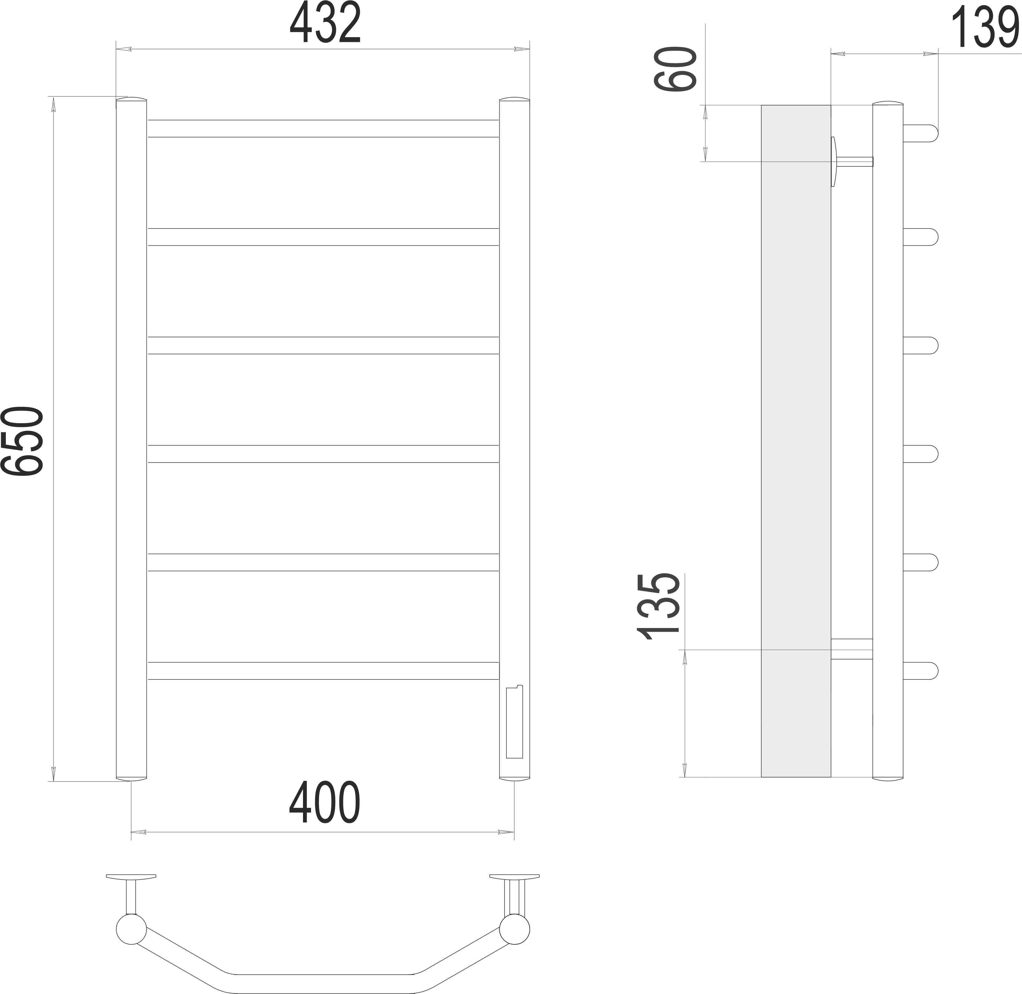 Полотенцесушитель электрический Terminus Виктория П6 400x650 мм 4670078531186