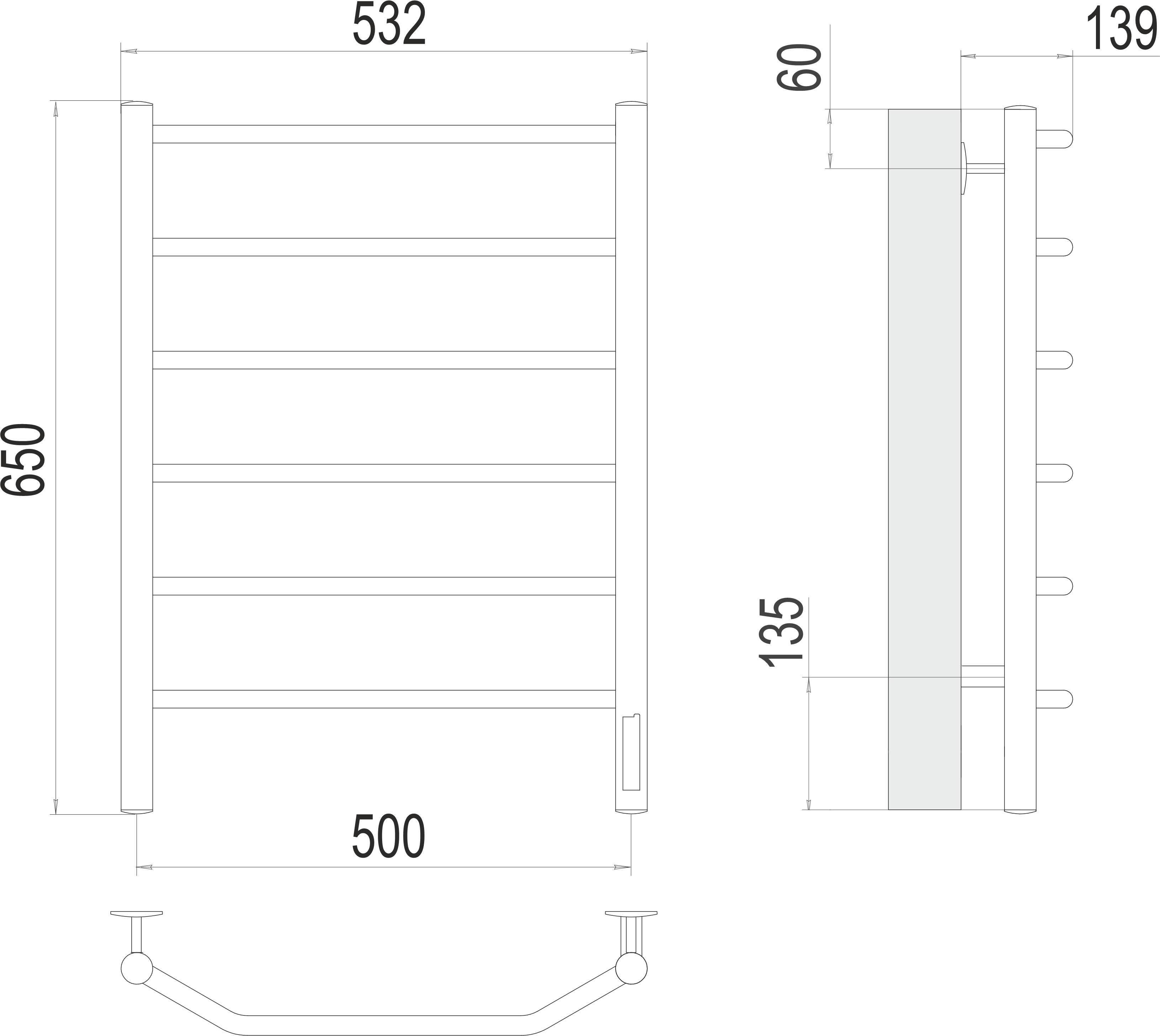 Полотенцесушитель электрический Terminus Виктория П6 500x650 мм 4670078531193